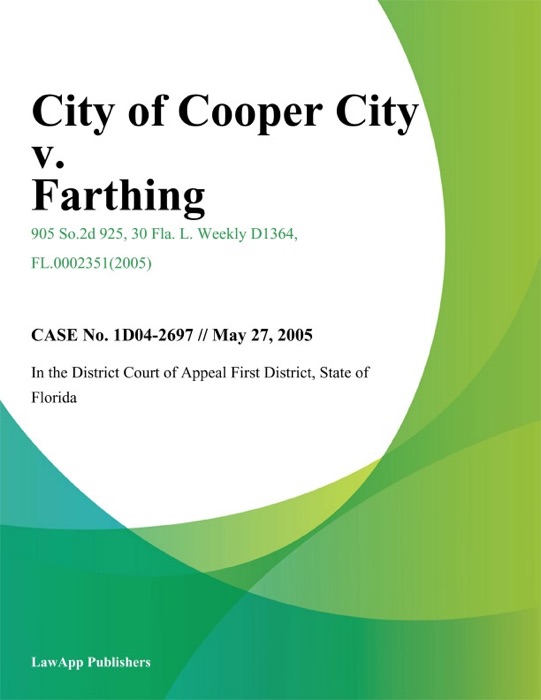 (DOWNLOAD) "City of Cooper City v. Farthing" by State of Florida In the District Court of Appeal First District * eBook PDF Kindle ePub Free